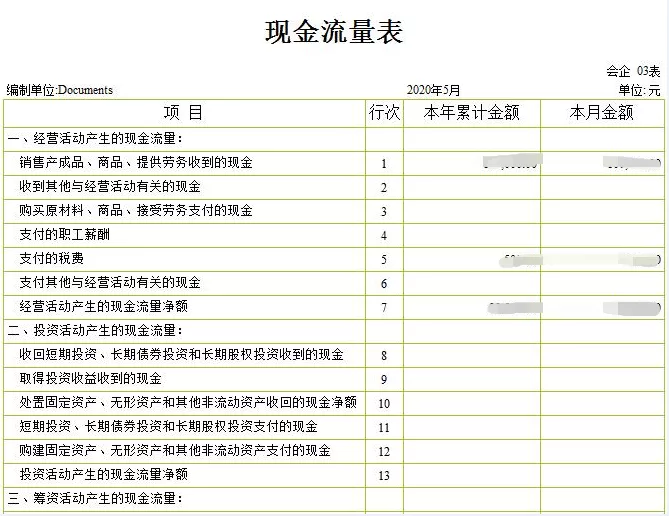 第三張是現金流量表,簡單地理解就是一定日期現金的所有實際收支的凈額,它一定程度上可以反映企業支付賬單(貨款)的能力。