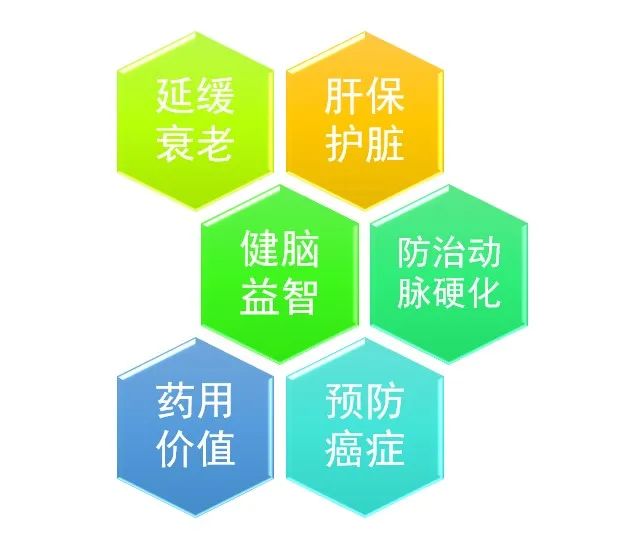 延緩衰老、保護肝臟、健腦益智、防治動脈硬化、預防癌癥、要用價值等。