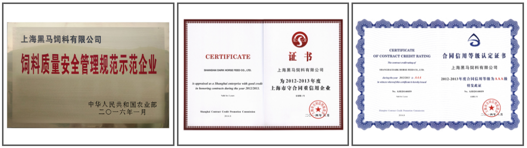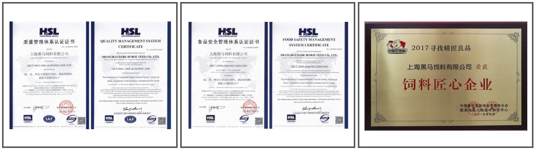黑馬公司已成立23年了,公司產品銷往全國近二十個省市,正是基于對黑馬品牌的信任,不少客戶與公司已經有近二十年的合作關系了。冰凍三尺非一日之寒,樹長百丈非一日之功。一個品牌的樹立絕不是一蹴而就,它需要企業長期不懈的努力,始終把品質當成品牌的基礎來做才可以鑄就的。雖然我們是農業部《飼料質量安全管理規范》示范企業、上海市守合同重信用AAA企業、ISO9001國際質量管理和ISO22000食品安全管理體系認證企業,2016年公司作為飼料工業優秀企業被上海市推薦收錄到農業部編纂的《中國飼料工業年鑒》中,2017年被中國畜牧獸醫學會養豬分會、國家飼料工程技術中心評為飼料匠心企業。從客戶的認可和這些榮譽來看,黑馬已經是一個有一定影響力的品牌了,但離我們的夢想還遠,我們仍然會一如既往地用品德促品質,用品質鑄品牌。上海黑馬飼料,品德品質品牌!