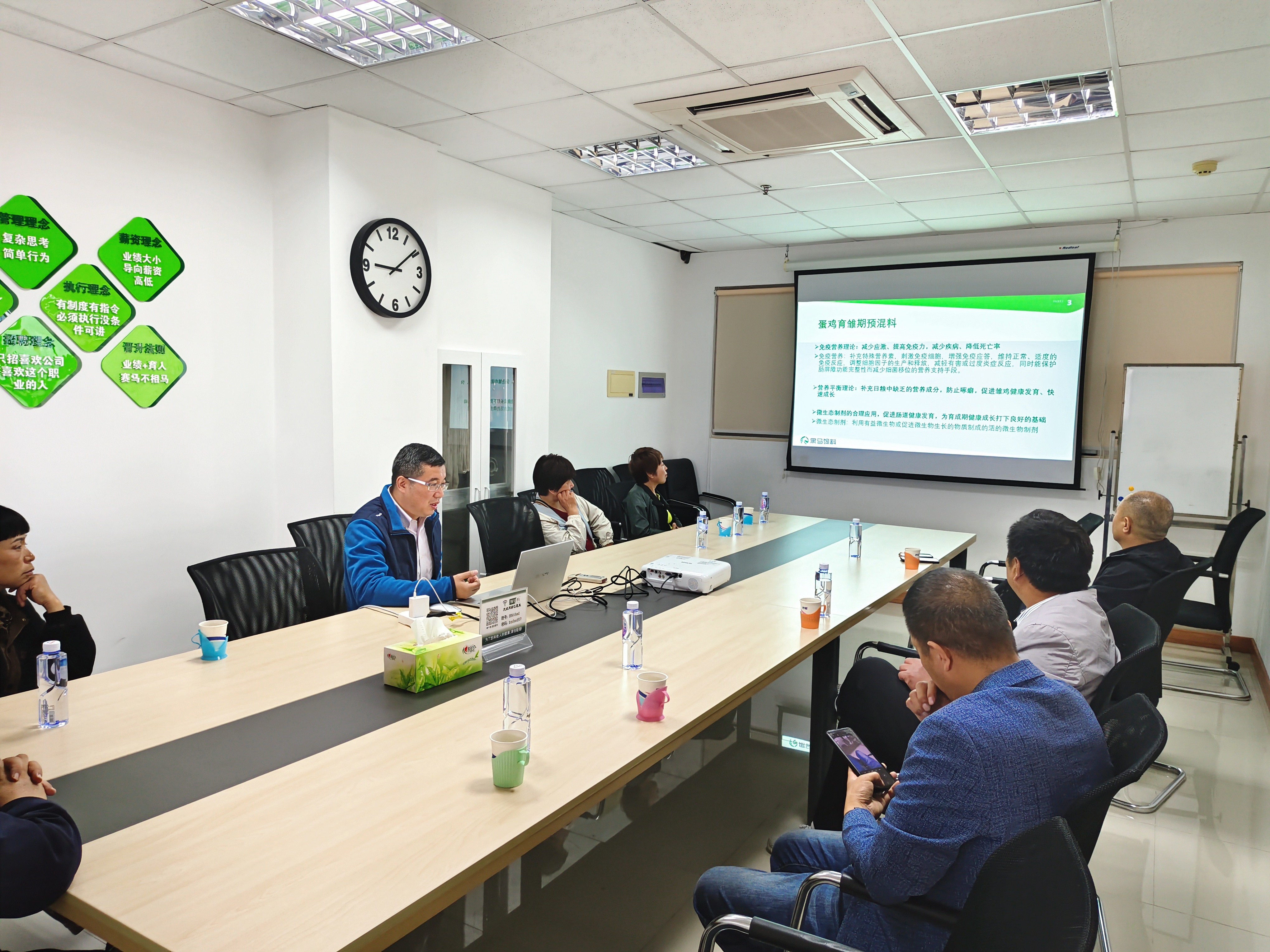 座談會上,公司副總經理卞總向李總一行介紹了我司高性能蛋雞系列產品。從產品的設計理念到產品特色,做了詳細的講解,并解答了大家在產品使用過程中遇到的問題。