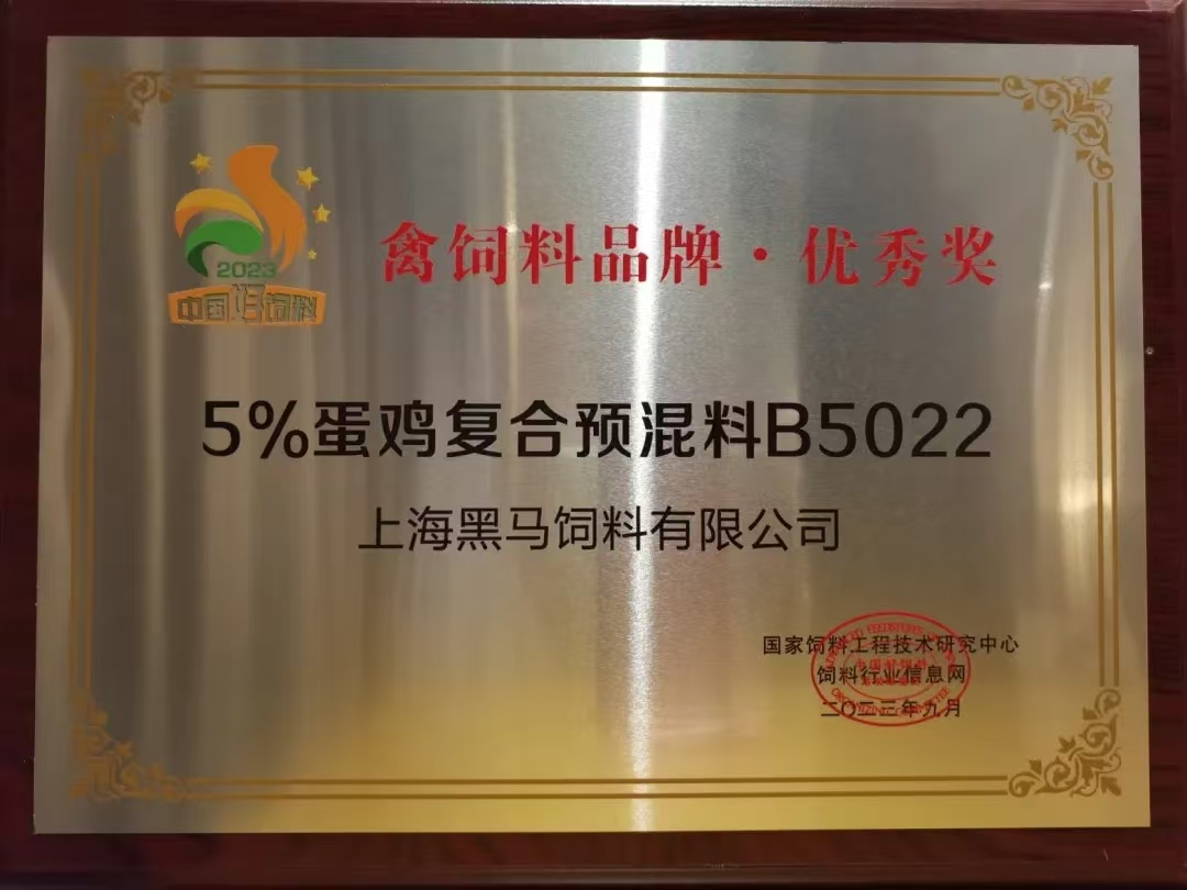5%蛋雞產(chǎn)蛋期復(fù)合預(yù)混料——B5022,榮獲“2023年中國好飼料——禽飼料品牌·優(yōu)秀獎”。該產(chǎn)品依據(jù)“蛋品佳、料耗低、養(yǎng)護腸道、高峰期長”的設(shè)計理念而開發(fā),可適應(yīng)不同品種和飼養(yǎng)環(huán)境的蛋雞生產(chǎn)需要。