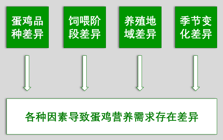 2、同一品種的蛋雞,不同的生長(生產(chǎn))階段,比如產(chǎn)蛋初期、產(chǎn)蛋高峰期和產(chǎn)蛋后期,其營養(yǎng)需求也有不小的差異。